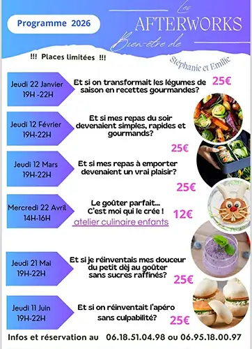 Programme des ateliers culinaires à Savenay Afterworks bien-être : et…